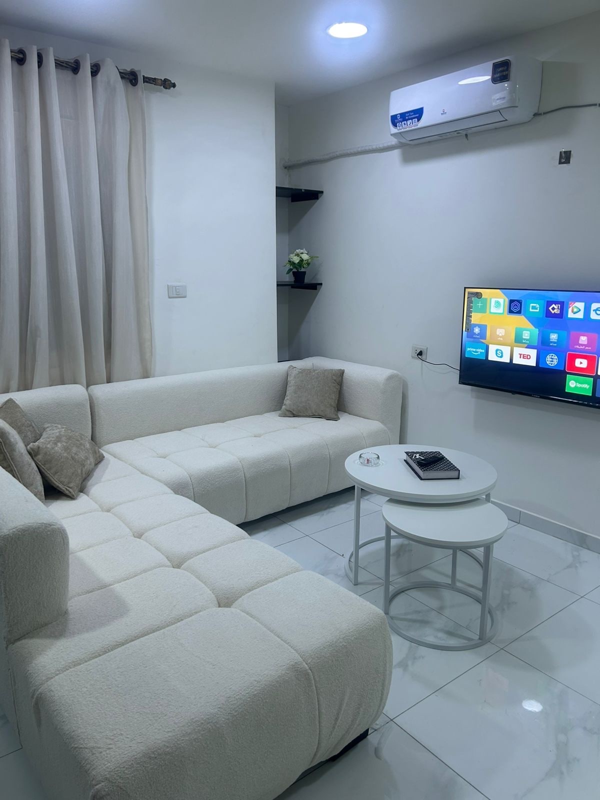 Located in North Abdoun. Residential, quiet and safe area. South Amman. 23 minutes to Airport. 42 minutes to Dead Sea. 7 minutes to downtown. You can call Careem or Uber with your mobile phone. Walking: 3 minutes to supermarket. 20 minutes to Abdoun Circle and its 11 eating places. The apartment is one floor below street level (Basement) and situated next to the car park. It is strictly NONSMOKING. you can smoke outside under the shade.