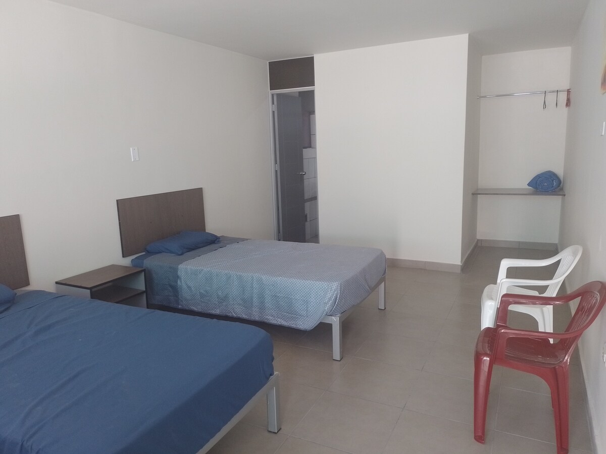 Bonito departamento, espacioso ,familiar, ubicado en el centro de la ciudad . 2 cuarto, 1 baño,lobby ,cocina totalmente equipadas para su uso,lavandería y patio,con agua caliente tv cable ,wifi.