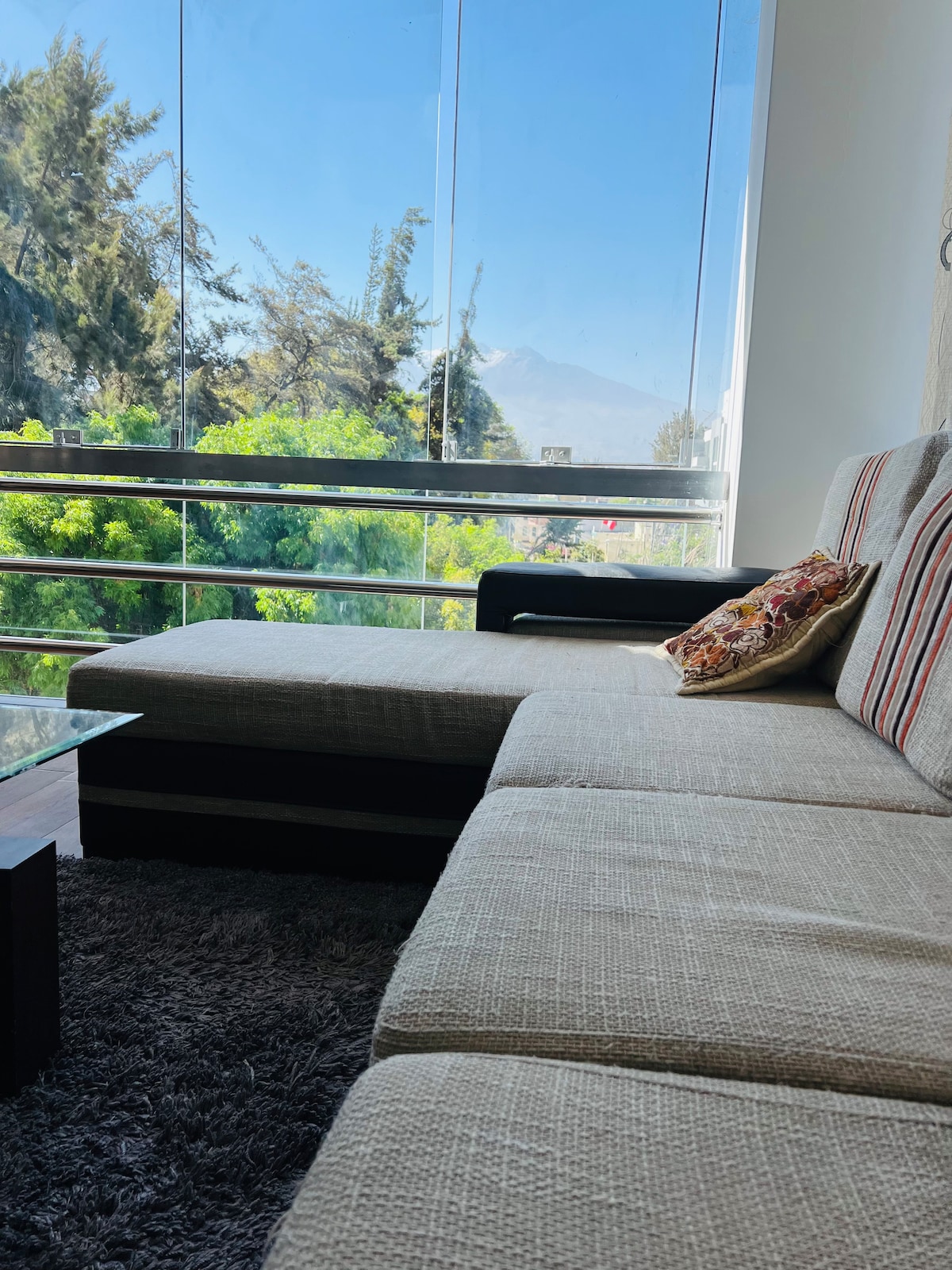 Perfecto departamento para una estadia placentera con acabados de primera y cama king size!!! Vistas panoramicas a un paso del corazón financiero y comercial de Arequipa con seguridad privada. Los principales actractivos de la ciudad estan a pocos minutos caminando como la plaza de Yanahuara y la plaza de Cayma donde podras disfrutar de la mejor gastronomia de la local. Disfruta de una experiencia con estilo en este alojamiento céntrico. Piso 5 edificio familiar sin ascensor.
