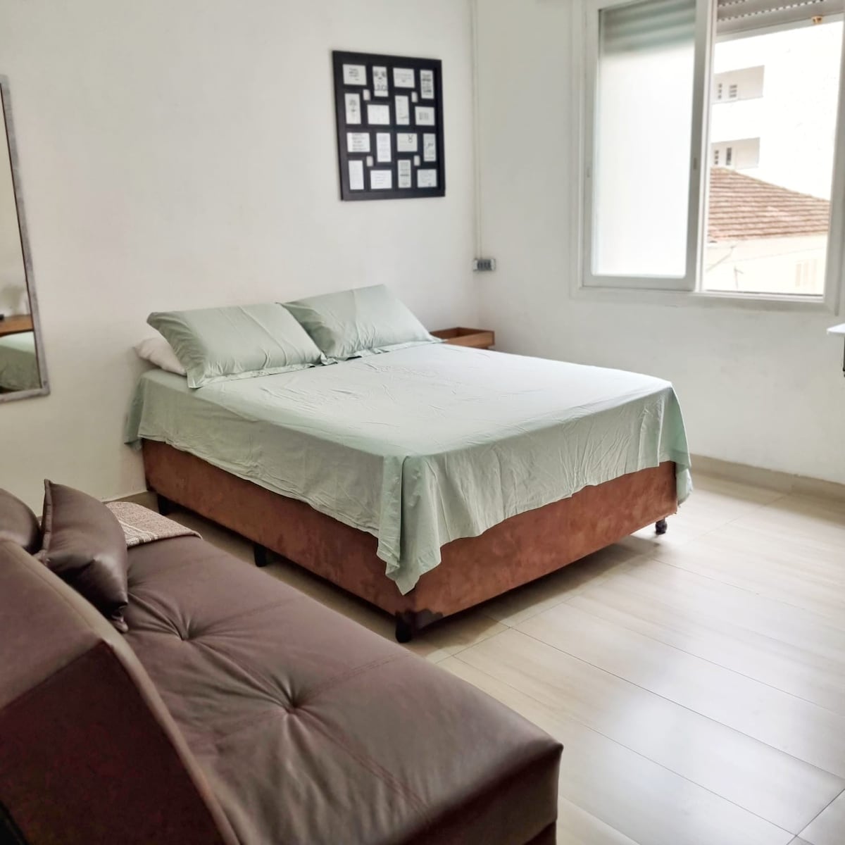 Flat Unique Santos mobiliado, apenas 230 metros da praia, menos de 3 minutos a pé. Roupa de cama, toalhas, ar condicionado, TV a cabo, wi-fi, cofre digital, secador de cabelo. Acomoda confortavelmente 4 pessoas, com uma cama de casal no quarto e um sofá cama na sala. Para maior conforto, o Flat conta com recepção 24 horas facilitando o check-in ou check-out, excelente café da manhã (pago a parte), piscina, academia, estacionamento com manobrista e limpeza diária, exceto domingos e feriados.