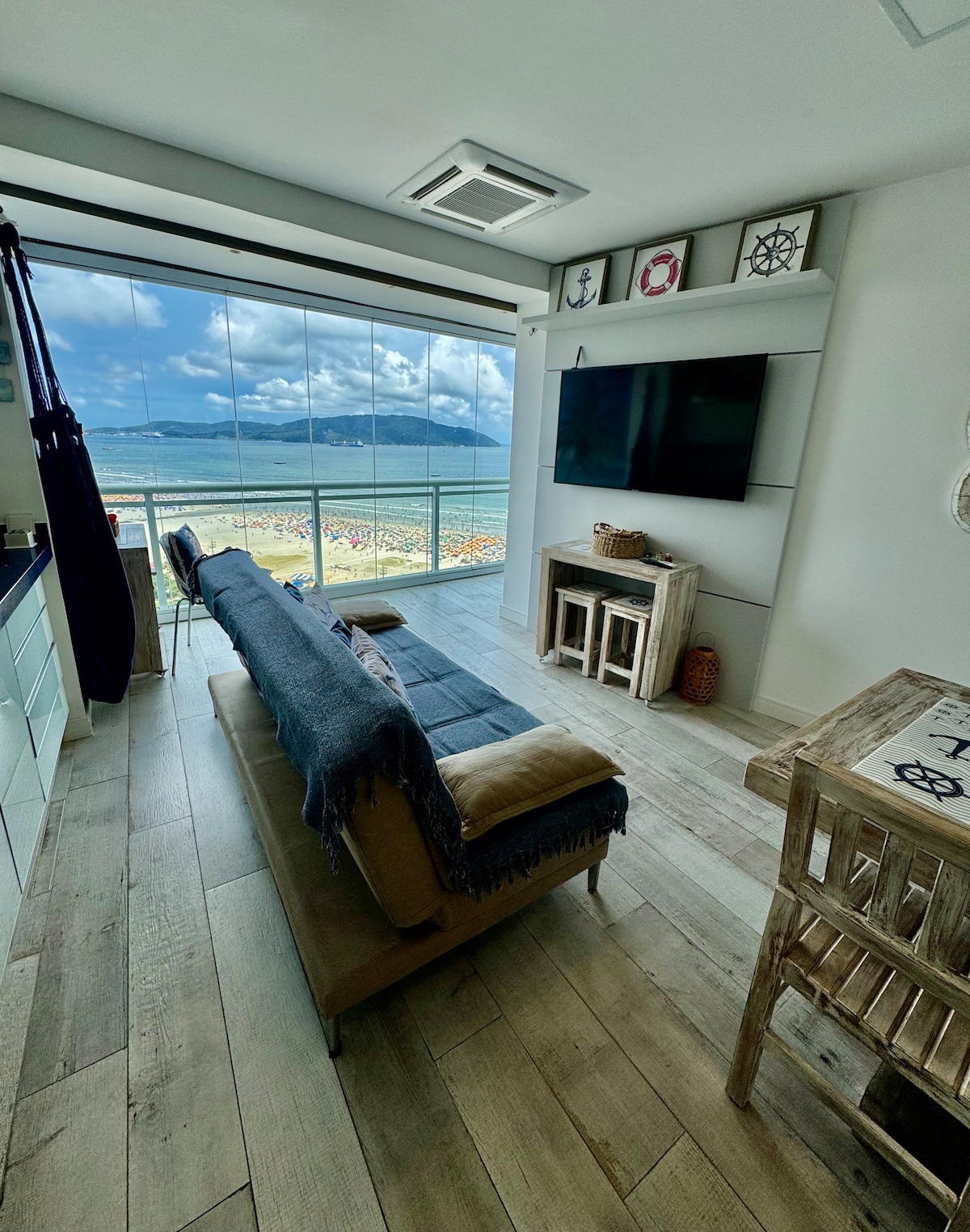 Apartment with incredible ocean views, perfect for enjoying every day. Unlimited Ocean Front is a high-end condominium with complete leisure facilities. Feel like you're at a beachfront resort, with the convenience of a Pão de Açucar supermarket nearby. This new 80m2 apartment comfortably accommodates 6 people, with a 2m x 2m king-size box spring bed, 2 single beds, a trundle bed and 1 sofa bed Air conditioning and Wi-Fi are available in apartament. Parking for 1 vehicle