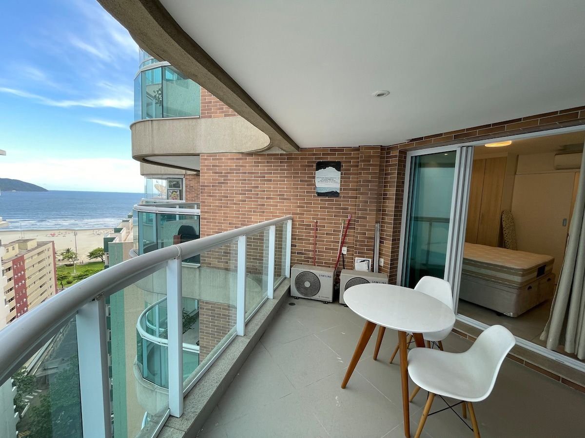 Apto de 1 quarto com vista para o mar no ed. Unlimited Ocean Front, basta atravessar a avenida para chegar a praia. Condomínio de alto padrão com lazer completo. Apto novo de 47m2 acomoda com conforto 4 pessoas (1 cama de casal e 1 sofá cama) Ar condicionado na sala e no quarto, TV a cabo, Wi-Fi no apto e em todo condomínio. Localizado na orla de santos (canal 2), em cima do supermercado Pão de Açúcar. Estacionamento para 1 veículo e limpeza diária no apto. É NECESSÁRIO TRAZER ROUPA DE CAMA.