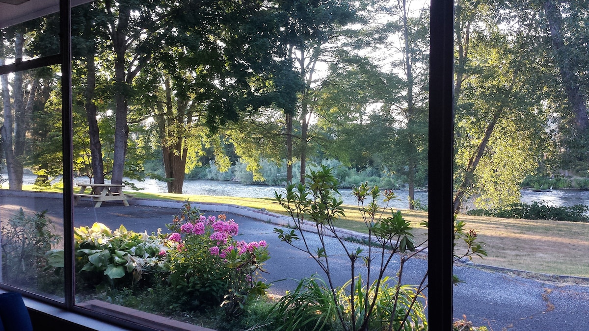 Beautiful park like setting on the Rogue river with a jacuzzi, swim spa two decks, fishing, yard games, hammock, barbecues, bicycles, kitchenette has Keurig With pods,a toaster oven, crock pot, small George Forman a portable two burner cook top , small skillet, one pot and most utensils to provide a meal. Minutes from Grants Pass, shopping, restaurants, and winery's.