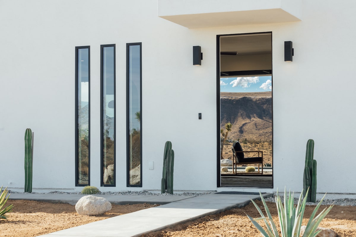 Welcome to Here Now Haven--a newly built home sitting on 2.5 acres right next to Joshua Tree National Park Entrance. Dip in the in-ground pool or soak in the hot tub overlooking the vast expansive desert mountain views. Relax in the quiet and tranquility of the desert under the starry night sky. Embrace the surrounding nature in every corner of the house with glass windows bringing lots of natural light during your stay. Book Here Now Haven now for a modern desert experience!