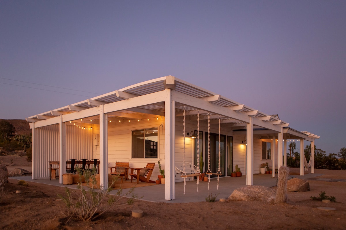 THIS is why you come to the desert. Perched high above Yucca Valley you‘ll find The Edge, our modern & stylish 2 bed/2 bath desert getaway. It's quaintly secluded on a 2.5 acre lot, yet only minutes from town & Joshua Tree National Park. Explore the local attractions, hike from your own backyard or lounge the day away in our luxurious hot tub while marveling at THE BEST VIEW in the High Desert! ✔ 2 King Bedrooms ✔ Full Kitchen ✔Spa ✔Fire Pit ✔Hammocks ✔BBQ ✔ High-Speed Wi-Fi See More below!