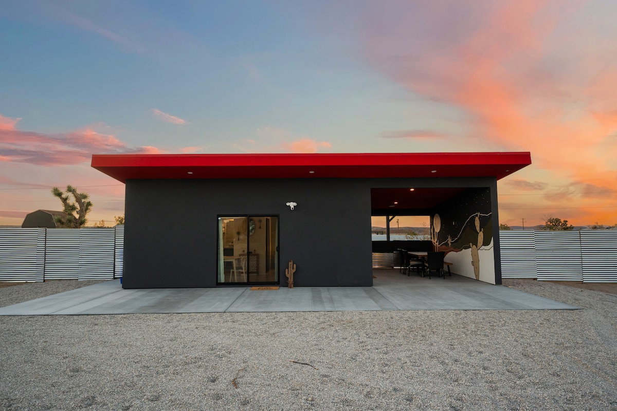 ▪︎ Sleek modern pool with heated spa and tanning shelf ▪︎ Dedicated wellness area with barrel sauna, cold plunge, shower, and Joshua Trees ▪︎ Stunning sunset and sunrise views with extensive outdoor seating areas featuring a fire sculpture All of our amenities are thoughtfully integrated into five private acres in the Joshua Tree area, offering uninterrupted desert views, exceptional night skies, and a rare sense of space and privacy, with a short drive to town and Joshua Tree National Park.