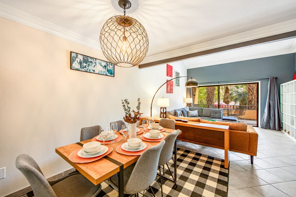 The property operates under La Quinta short-term permit number 064330. The unit is a studio, 1 bathroom, max occupancy of 2. Pet friendly, dogs only. $100 pet fee applies Nicely appointed studio with a king bed, full bathroom, wet bar, and private balcony overlooking the lap pool. Great value in La Quinta with views of Santa Rosa mountains. Community amenities nearby include gas grills, hammock garden, clubhouse, and fitness center. La Quinta Resort is a 10-minute walk away for conferences or