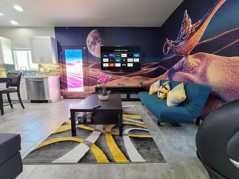 Cathedral City STVR Permit #BLIC0011552022. Discover your perfect desert retreat at this private guest unit, just minutes from world-famous Palm Springs! Enjoy a relaxing stay in a fully equipped space with its own separate entrance, a private pool and hot tub, and breathtaking mountain views. Whether it’s a family vacation or a romantic getaway, this retreat offers the ideal blend of comfort, privacy, and style, all surrounded by lush palm trees and a serene garden.