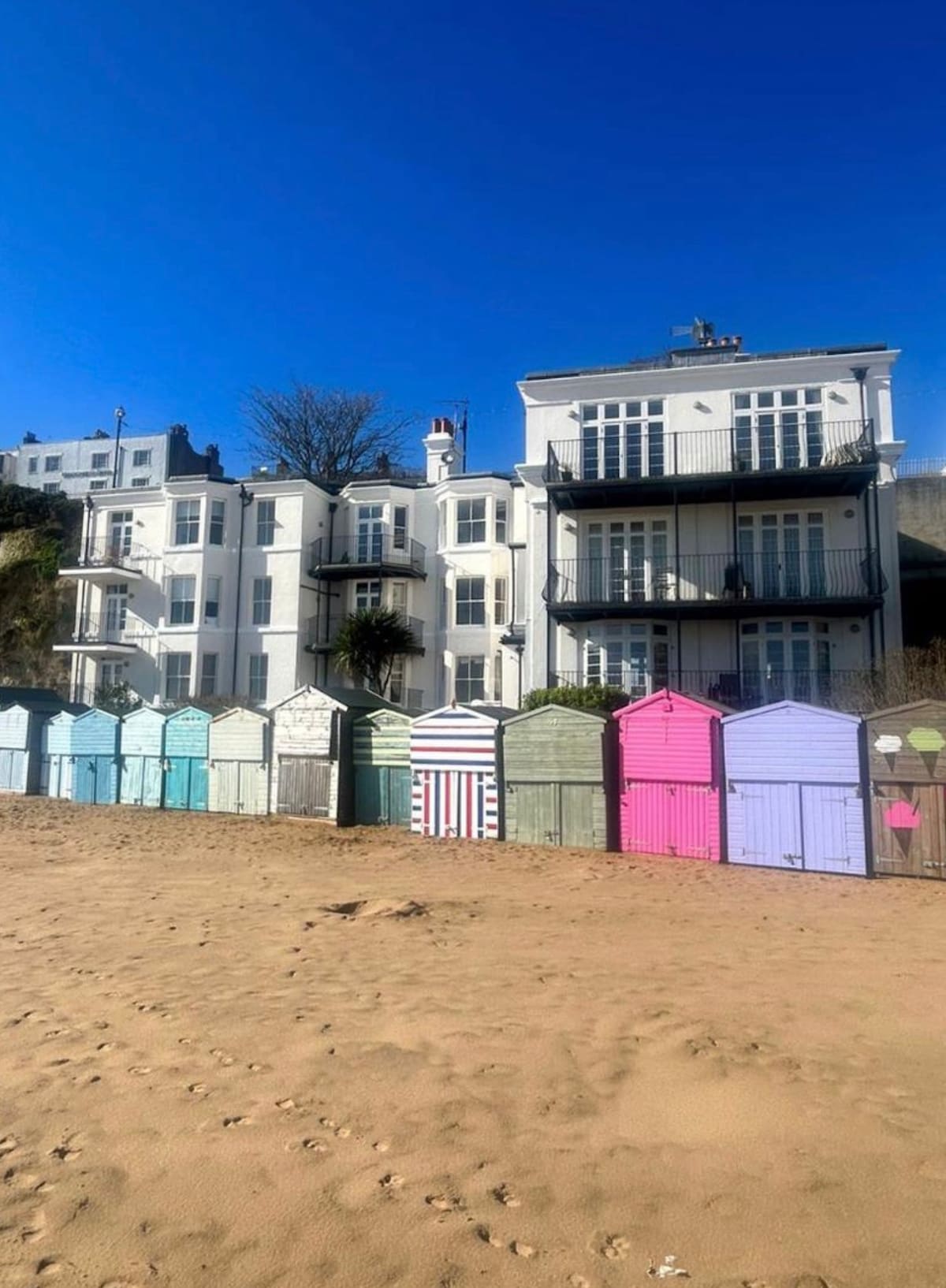 Relax and enjoy some of Margate’s best sea views in our grade-II listed Victorian flat – sea so close you can see the foam on the waves. Our sunny, stylish 2nd-floor Victorian flat has a large open-plan living space with 3 huge bay windows overlooking Walpole Bay and the Lido. Step outside and you can be on the beach in under 30 seconds. And it's just 5 minutes walk to Margate Old Town and the Turner Gallery. The perfect weekend getaway or holiday home.