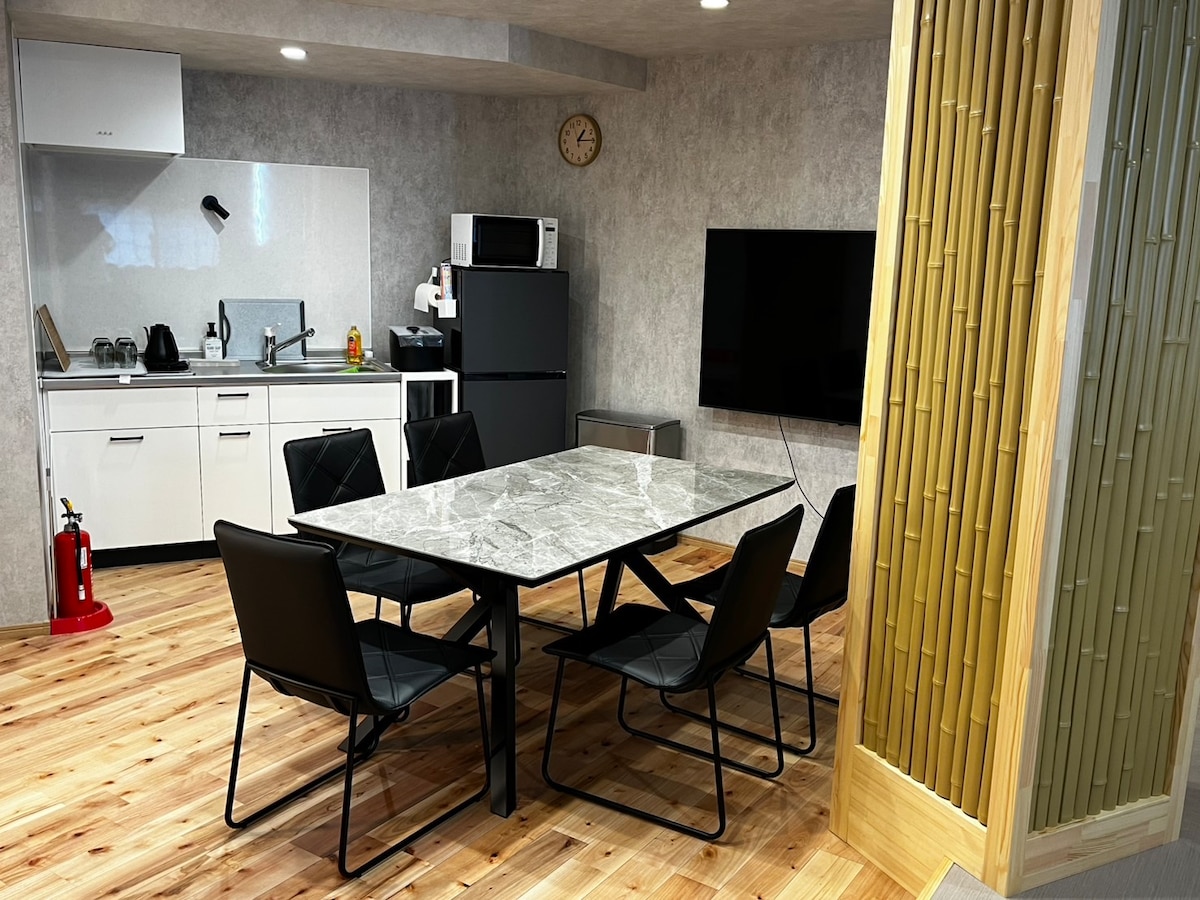 豪华公寓绝佳位置,车站步行5分钟,65㎡ 2室1厅最多8人,高速Wi-Fi,超大智能电视,洗衣烘干机