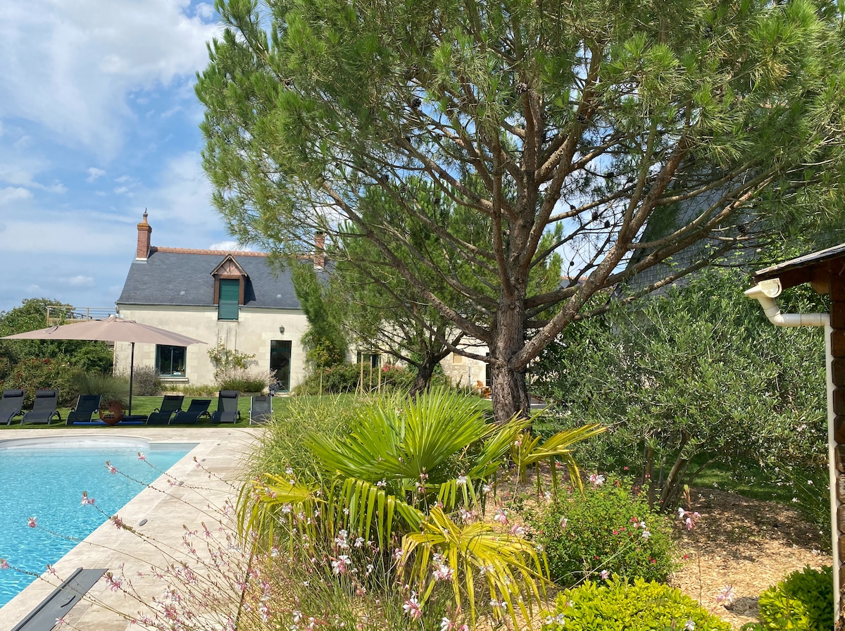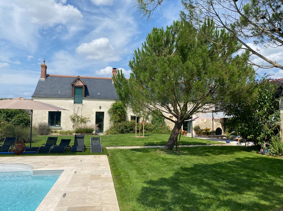 Un manoir de charme des années 50 dans un splendide parc paysagé et arboré, au cœur de la Touraine, avec accès jacuzzi. Il se compose de deux chambres équipées de matelas mémoire de forme TEMPUR (dont un lit King-Seize), d'une salle de bain, d'une cuisine équipée, d'un salon-salle à manger et d'un salon télé. Une terrasse équipée de chaises longues et de tables à manger sera vous séduire. Le tout à proximité de tous commerces et à trois minutes du centre historique de Tours.