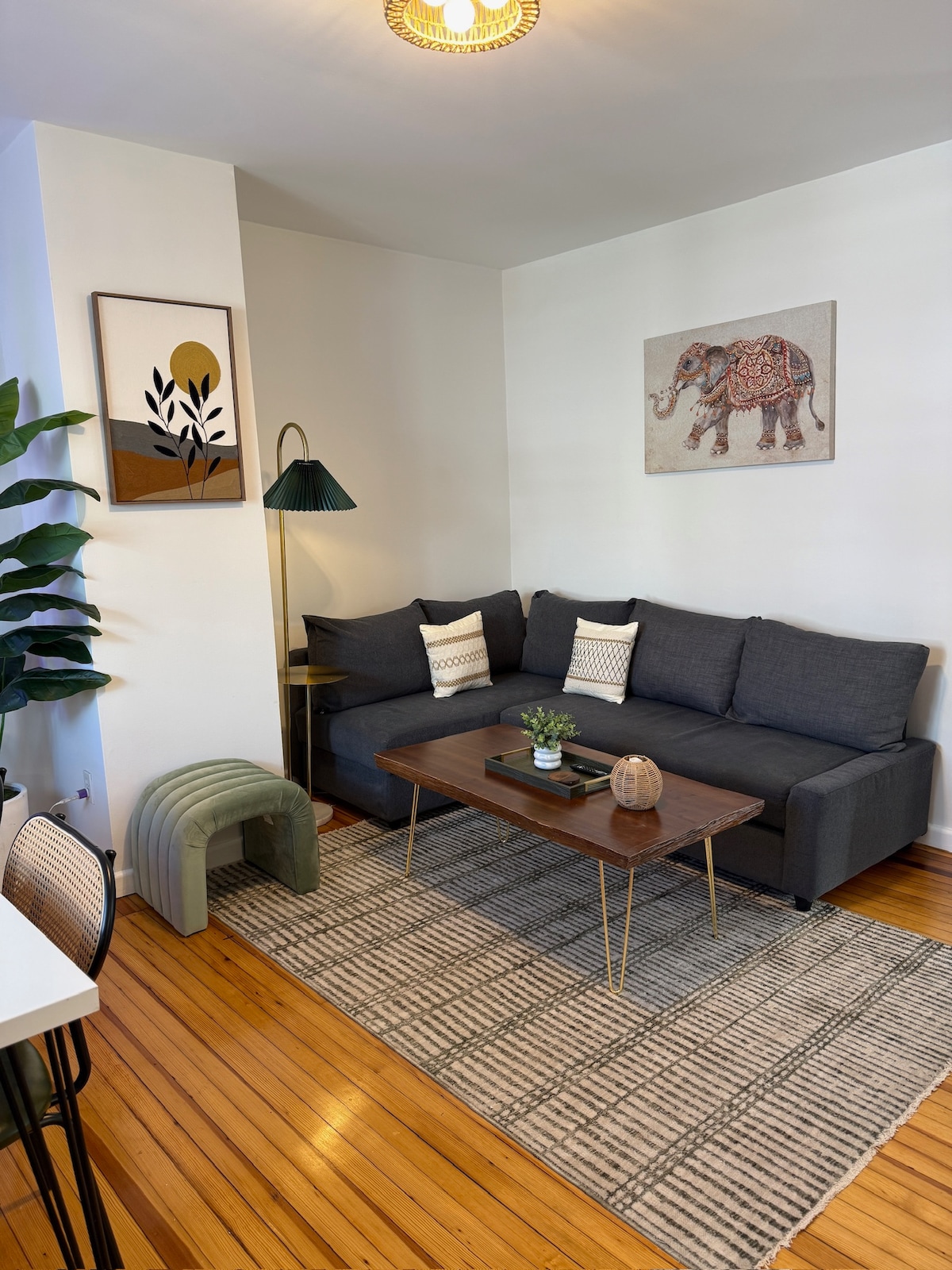 Stay in a freshly restored 125-year-old Jersey City row house with everything you need to feel at home — plus free parking on request. This sunny two-bedroom apartment sleeps up to 6, with two queen beds and a queen sofa bed in the living room, plus a full kitchen, in-unit laundry, private office nook, and fast Wi-Fi. Perfect for families, professionals, and anyone who wants quick, easy access to NYC without the chaos.