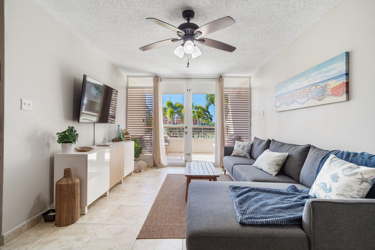 Lujoso Apartamento con vista al mar ubicado en un tercer piso en el corazón del poblado de Boquerón. El area cuenta con variedad de restaurantes, bares, tiendas y acceso directo a la playa. Puede disfrutar de la vista y vida nocturna desde el balcón. /// Sea view Luxurious apartment located on a third floor in the heart of the town of Boquerón. The area has a variety of restaurants, bars, shops and direct access to the beach. You can enjoy the view and night life from the balcony.