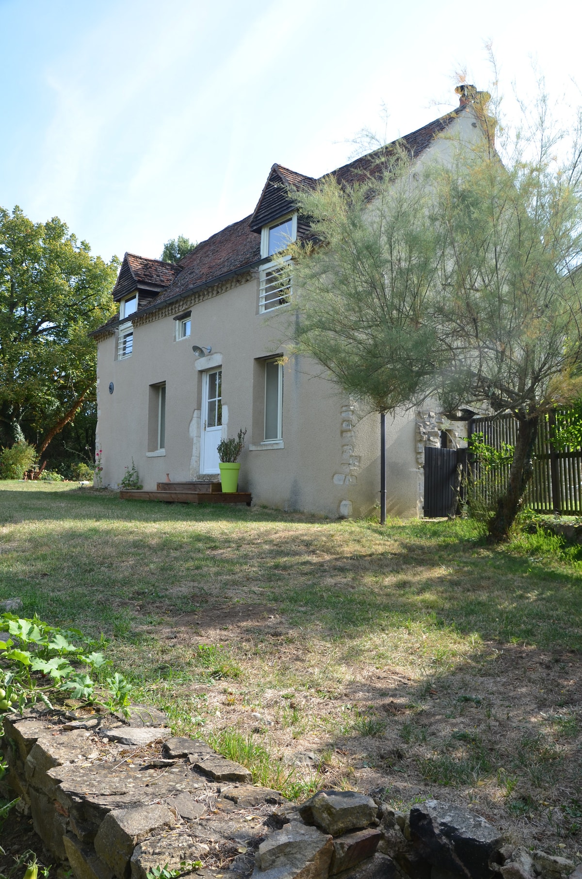 Ce gîte de 35m2 est accolé à la maison des hôtes mais séparé par une pièce centrale qui permet aux voyageurs d'avoir la tranquillité souhaitée dans un grand espace de verdure arboré. Le logement dispose d'un lit double dans une chambre et d'un canapé lit double dans le salon logeant facilement 4 personnes. Un lit bébé peut être fourni gracieusement sur demande. La terrasse vous accueillera pour vos repas en plein air face au jardin joliment aménagé. Draps et serviettes fournis. A très bientôt.