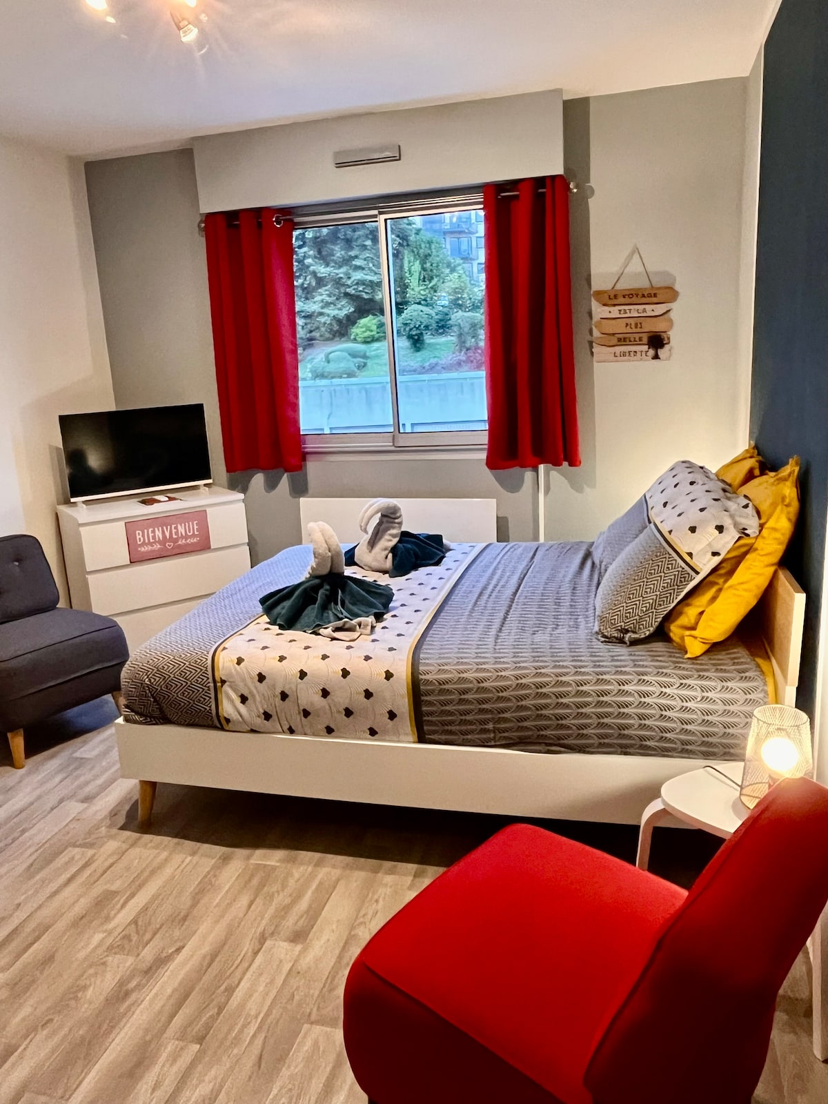Logement climatisé en période estivale, propre, tout confort, une déco atypique, avec lit à confortable, prestations au top, propriétaires à l'écoute et une arrivée en toute autonomie, simple et rapide !! Que ce soit pour une escapade reposante ou pour une location au mois, cet appartement offre un cadre paisible et pratique, à deux pas des commerces et des attractions locales. • 2 pers • Arrivée : 17 h • Départ : 10 h • Parking gratuit dans la rue ou en face