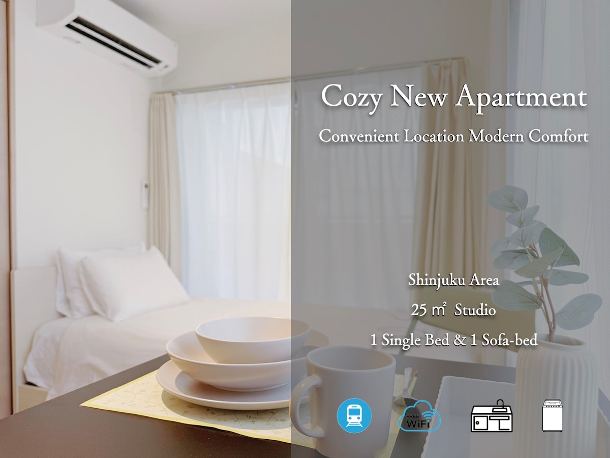【お部屋】おしゃれで静かな25㎡の1K 【定員】最大2名(シングルベッド1台+ソファベッド1台) 【階数】3階(階段のご利用が必要です) 【アクセス】西新宿五丁目駅 徒歩数分 明るく落ち着いたデザイン空間 観光/ビジネス/長期滞在にもおすすめ アメニティ充実(タオル、シャンプー、Wi-Fiなど) バスルーム 浴槽+ウォシュレット シャンプー/コンディショナー/ボディソープ ドライヤー/タオル 設備 高速Wi-Fi/エアコン・暖房/TV 洗濯機/収納スペース/物干しラック ハンガー/アイロン キッチン(自炊OK) フルキッチン/2口ガスコンロ 電子レンジ/電気ケトル 冷蔵庫+冷凍庫 食器・カトラリー/調理器具 周辺 食べログ1位の人気ラーメン店 寿司店/蟹料理の有名店 アクセス補足 空港から:電車またはリムジンバス利用可 (新宿ヒルトンホテル行きが便利) ルール 敷地内および建物前道路:禁煙 静かな住宅街のため夜間はお静かに(大声はご遠慮ください) ゴミ分別にご協力ください バルコニーは緊急避難用のため通常利用不可 (喫煙・飲酒・歓談もご遠慮ください)