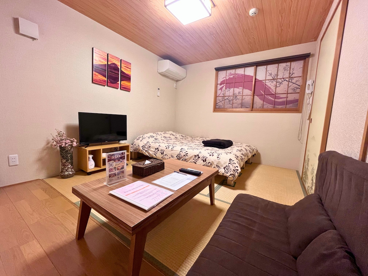 欢迎您选择我的独栋公寓! MORISHITA GARDEN 房间号码:401 公寓位于东京都地铁森下站附近 车站A2,A5出口出来步行5分钟-7分钟左右 森下站有大江户线和新宿线两条地铁干线,交通十分方便 另外还有步行到JR的两国车站 根据目的地可以选择利用地铁或JR出行 公寓一楼有中央门锁,没有钥匙无法进入,安全性很高,女士可以安心入住! 此外楼内带有电梯,免去您携带大件行李的烦恼 设计师精心打造的风格极具美感,房间整体干净简洁 住在这里可以享受一个舒适,便捷,休闲,快乐的文化空间 目前煤气炉不可用,想做饭的人请咨询我! 需要餐具或餐具时请告知。 ☆不管是家人还是情侣。不管是朋友还是出差。 ☆ FREE WIFI ☆ 独立卫生间,浴室浴缸 ☆ 全室禁烟 ☆楼后面有24小时7-11便利店 ☆ 尽可能满足客户的要求 ! 请与我协商 ! 《设备与设施》 微波炉、冰箱、电水壶、电视机、圆桌、沙发、衣柜、洗衣机、洗衣粉、沐浴露、洗发水、护发素、纸巾、手巾(人数份)、浴巾(人数份) ※ 长期滞留时,根据客户的要求更换床单和毛巾。