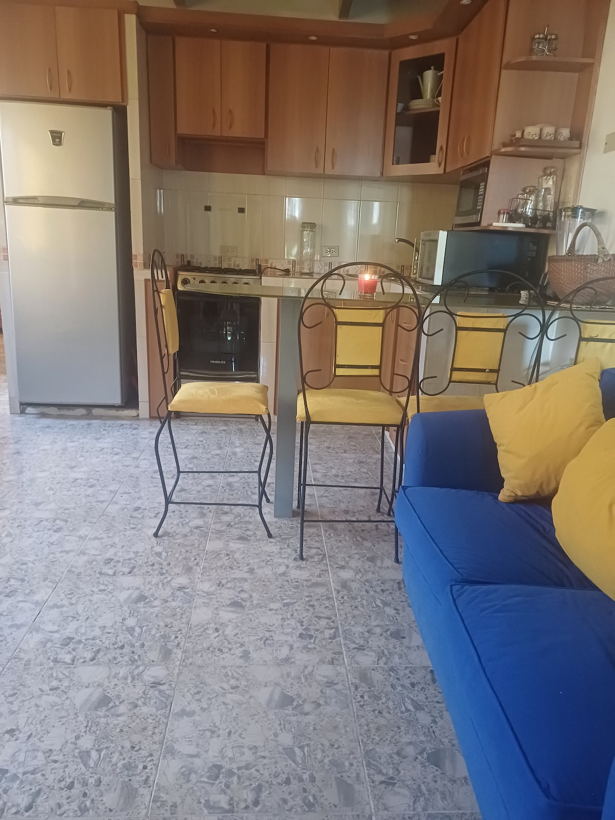 Estarán cerca de todo cuando se queden en este alojamiento amplio y tranquilo. Ubicación cerca del Paseo de la Cruz y el Mar (Paseo Colón), supermercados, gasolineras, playas, ferry y embarcaderos de lanchas en Puerto La Cruz y Guanta para visitar islas y playas del Parque Nacional Mochima. 3 habitaciones (planta alta) con baños , aire acondicionado, televisión por cable, internet, cocina equipada, terraza, 2 puestos de estacionamiento, sistema hidroneumático y tanque subterráneo.