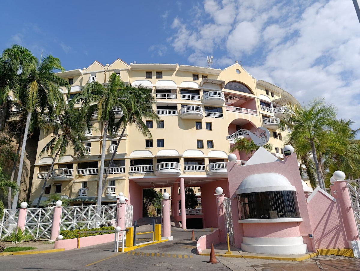 Apto para max 6 personas muy cerca de todos los sitios de interés, 2 hab, una con cama Queen AC, otra con 2 camas individuales, en la sala un sofa cama matrimonial y AC. Excelente ubicación y acceso a la Playa. No necesitas vehículo porque estarás a sólo 20m de bares y restaurantes de playa, discotecas, licorerias, panaderias, farmacias, bodegones, gym, y prácticas de mini golf. Zona muy segura para caminar, pasear dia y noche. Puesto privado para su vehículo, WIFI y tanque de reserva de agua.