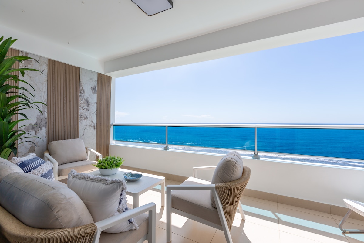Modern oceanfront apartment in Juan Dolio with direct beach access, pool, fast wifi, air conditioning, 24 hour security, and private parking. Bright space with balcony and ocean view, ideal for vacations, remote work, and long stays. Close to restaurants, cafés, and supermarkets.