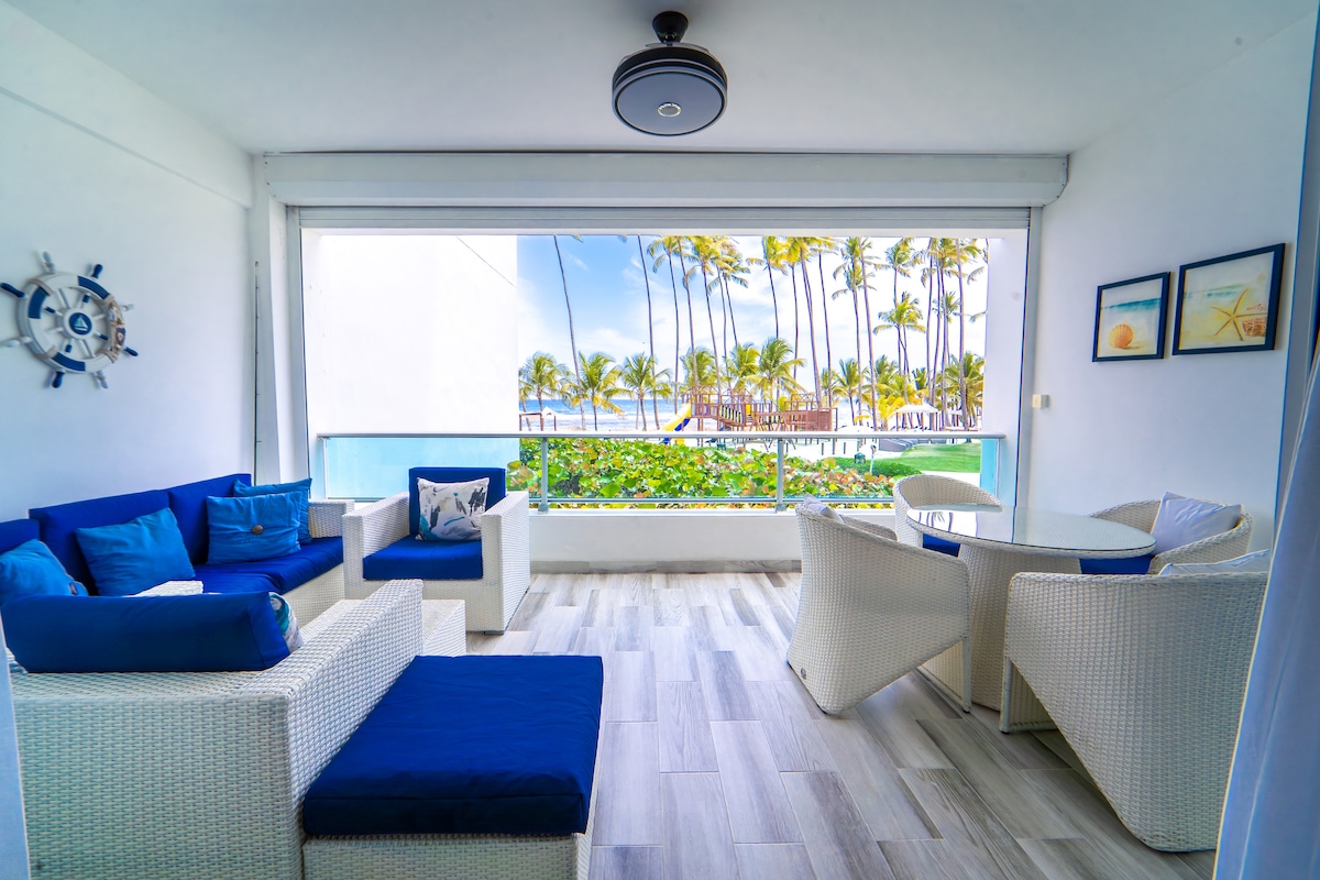 Incredible Ocean View beach condo for 6 located in the luxurious Las Olas Condominium in Juan Dolio, Dominican Republic, Conveniently located just 20 mins from Las Americas International Airport and 30 mins from Santo Domingo. Our fully furnished apartment offers lots of on site amenities such as: Private beach, pool, kids play area, gym, laundry room, multiple social areas with in-house restaurant, private parking, 24hr security & more. Bars & restaurants all within short walking distance.