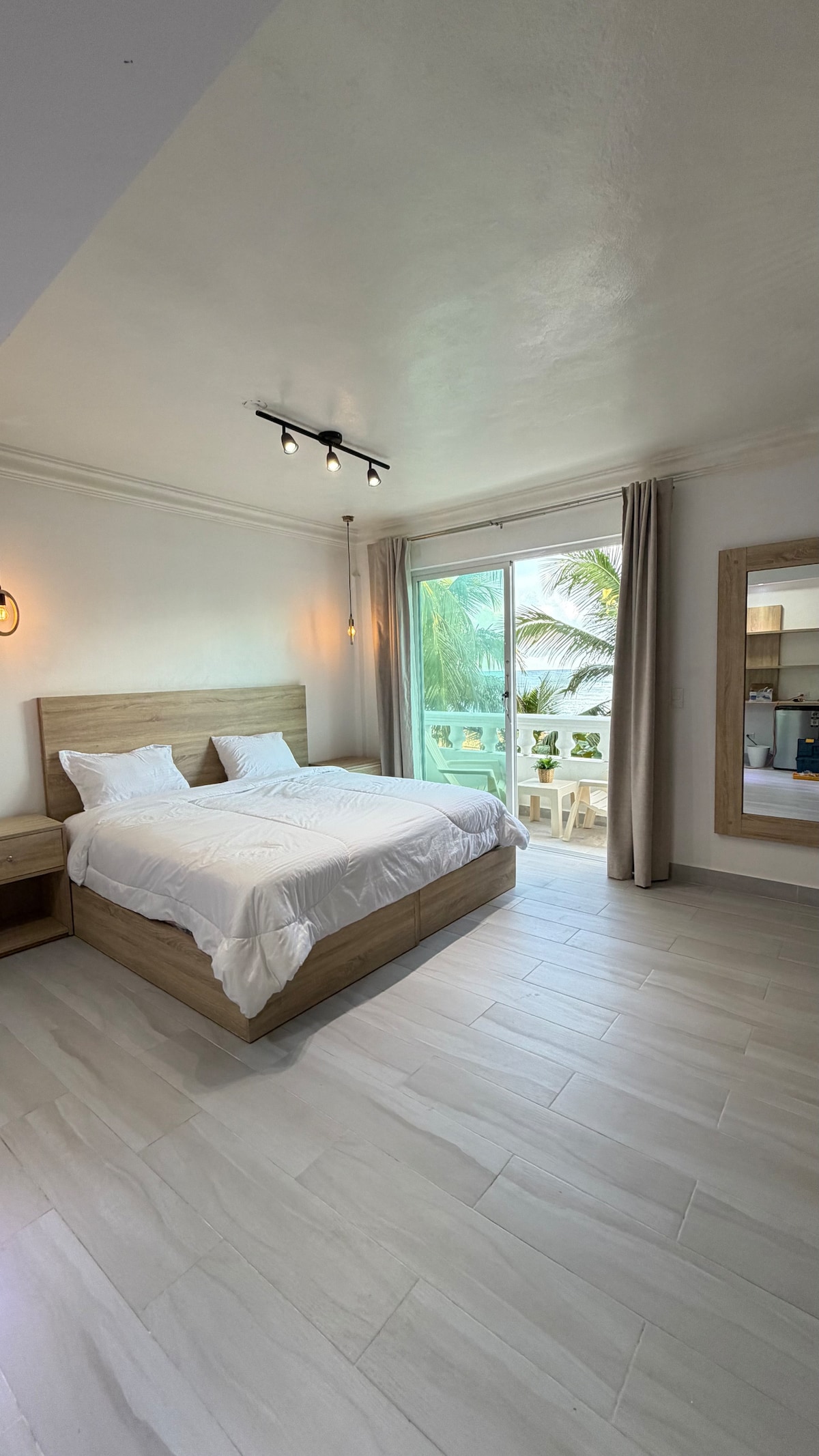 Amplia habitación frente a la playa, luminosa y confortable. Cuenta con aire acondicionado y Wifi, ideal para parejas que desean comodidad, descanso y una ubicación privilegiada frente a la playa. Contamos con 3 Restaurantes a la carta con % de descuento a nuestros huéspedes y Desayuno opcional.