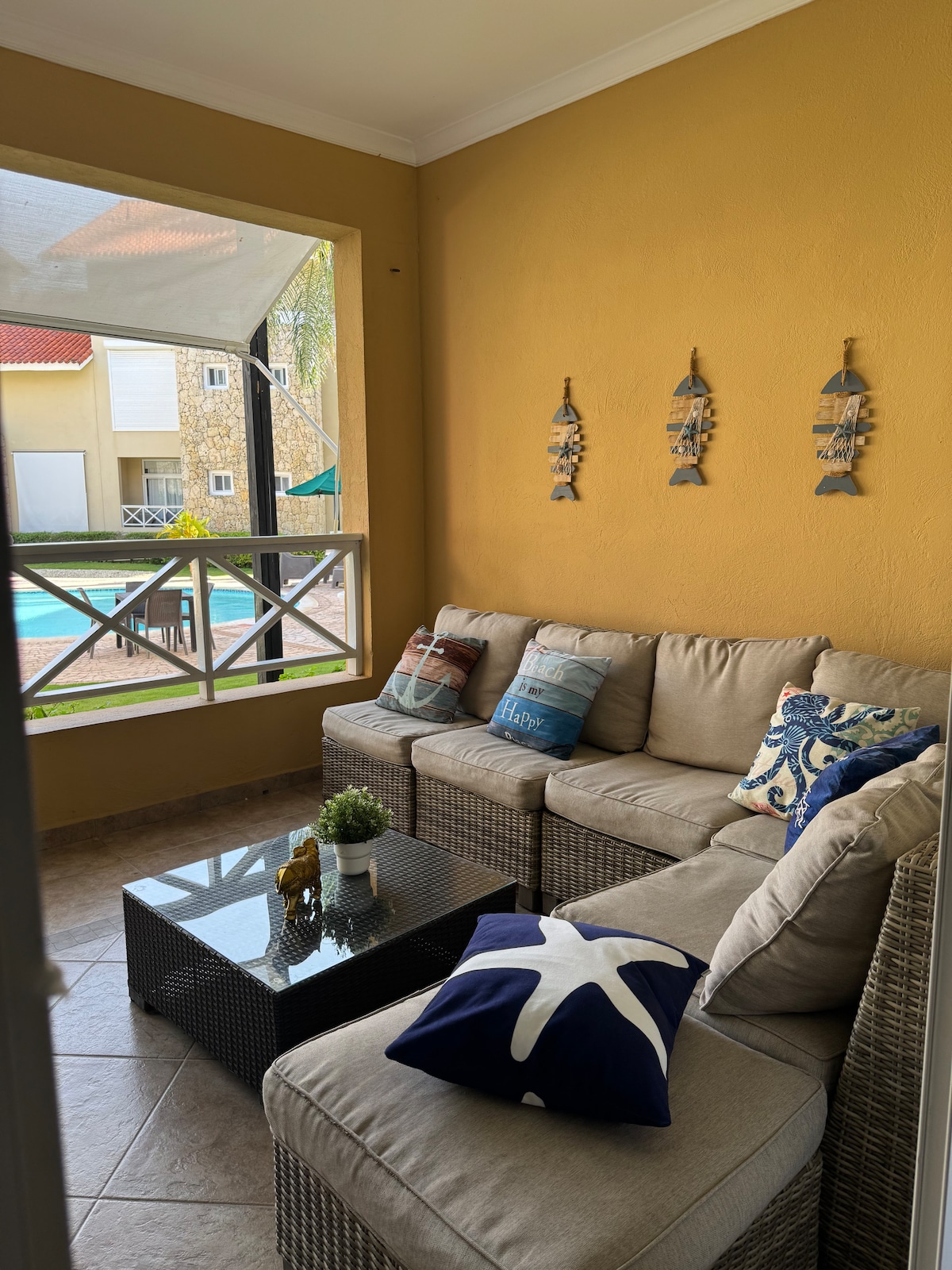 Un apartamento full equipado en la zona de Juan Dolio, a solo 20 minutos del Aeropuerto, con vista a la playa, cocina full equipada, 2 BD, 1 cama King Size, 2 camas full Size, colchones back care, aire central, 2 tv de 65 y 55”, streaming, netflix, wifi, lavadora, secadora, shutters, malla de seguridad en el balcon, 2 ascensores, gimnasio, piscina adultos,2 jacuzzis, piscina niños, BBQ, salón con billar, dominó, fútbol de mesa, playground de niños, terraza, parqueos y fabulosas actividades.