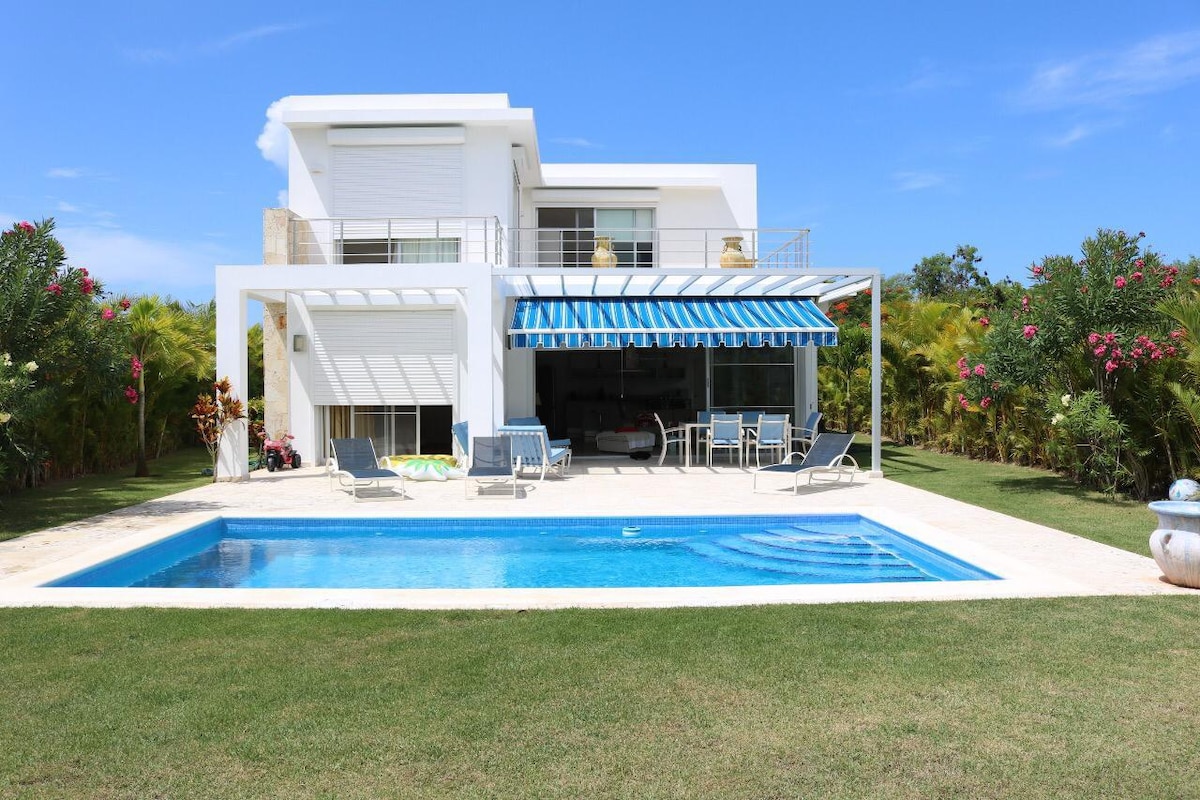 Lleva a toda la familia a este fantástico lugar a solo 5 minutos de la playa(club de playa privado). Con bastante espacio para disfrutar, en el prestigioso complejo Guavaberry golf and resort. Para 18 personas -5 Habitaciones grandes todas con aire acondicionado, smart tv, abanicos bluetooth. -Habitación de servicio con su baño -5 Baños. -Sala star -Gazebo amplio -Piscina -Jacuzzy -Cancha de baloncesto -Mesa de Billar -Barbecue(BBQ) -Agua caliente permanente -Area de lavado con maquina de lavar