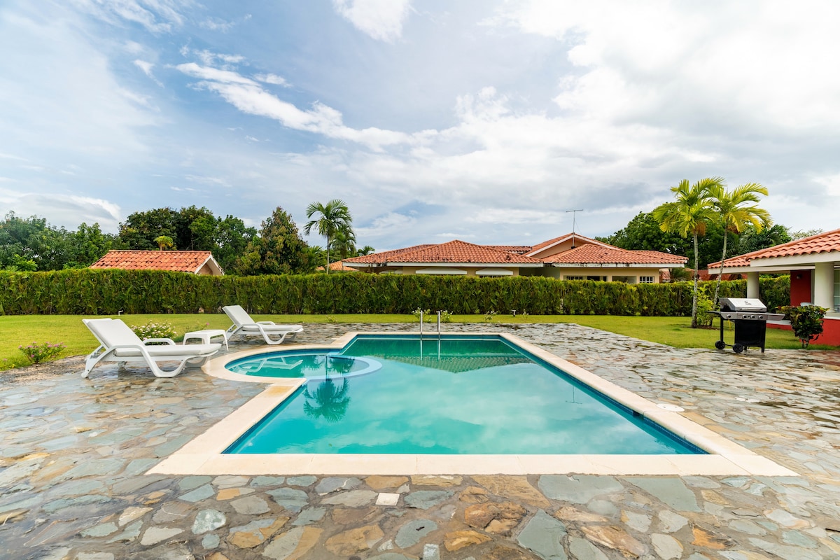 KING BEDS! -Available Air Mattress for additional Guests. CHEF AVAILABLE! ($125 per day) (BREAKFAST LUNCH AND DINNER) -Groceries Not Included- 25 Min From Airport (SDQ) *Must send Guest List before Check in * SWIMMING POOL, JACUZZI. PROFESSIONALLY CARED GRASS. BBQ, POOL TABLE. *IN FRONT OF THE GOLF COURSE* BEACH (1 min Drive) From Club entrance SPEAKERS, CHAIRS, TABLES WE PROVIDE IT! -For additional Fee (Birthdays Parties , Special Events, Buffet, fee for Additional Guests, Djs)