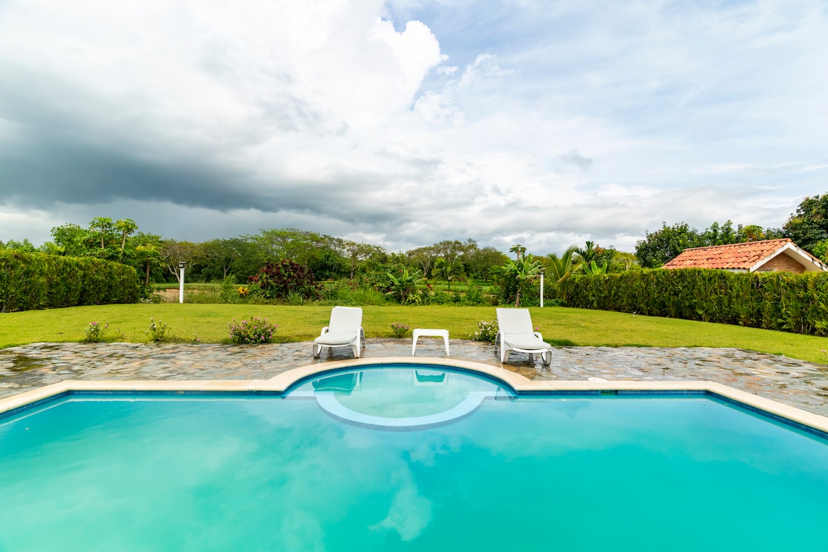 La villa cuenta con una piscina privada en la parte trasera de la propiedad, de uso exclusivo para los huéspedes. Además, los huéspedes también pueden disfrutar del área común mostrada en las fotos, la cual es compartida únicamente con otras 5 villas y normalmente solo es utilizada por nuestros huéspedes.