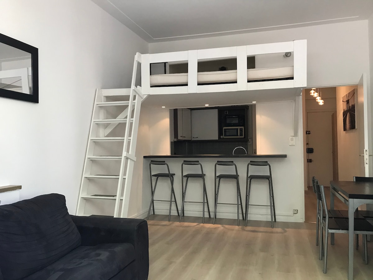 Juan les Pins火车站和海滩附近的两居室