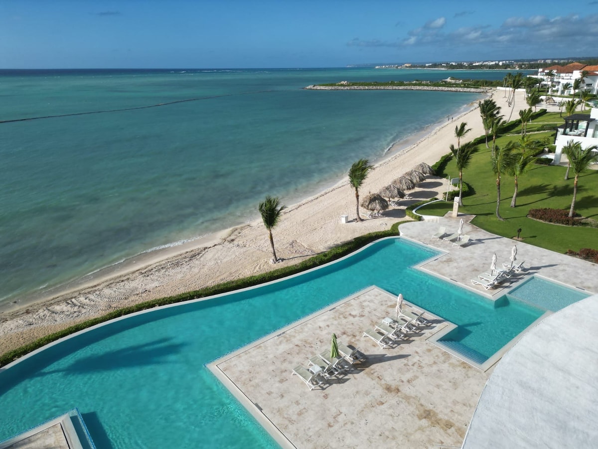 Only 10 meters from the Beach with one of the best views in all of the Dominican Republic, this is the PREMIER property in all of Punta Palmera! Featuring Panoramic views of the Beach, open ocean, and the Farallon (Plateau) in the distance. With El Grupo Thornberry you get access to all that Cap Cana has to offer along with fully renovated units, daily service, large televisions, fast WiFi, full kitchens, and available services like transportation and on-site staff to prepare meals & drinks.