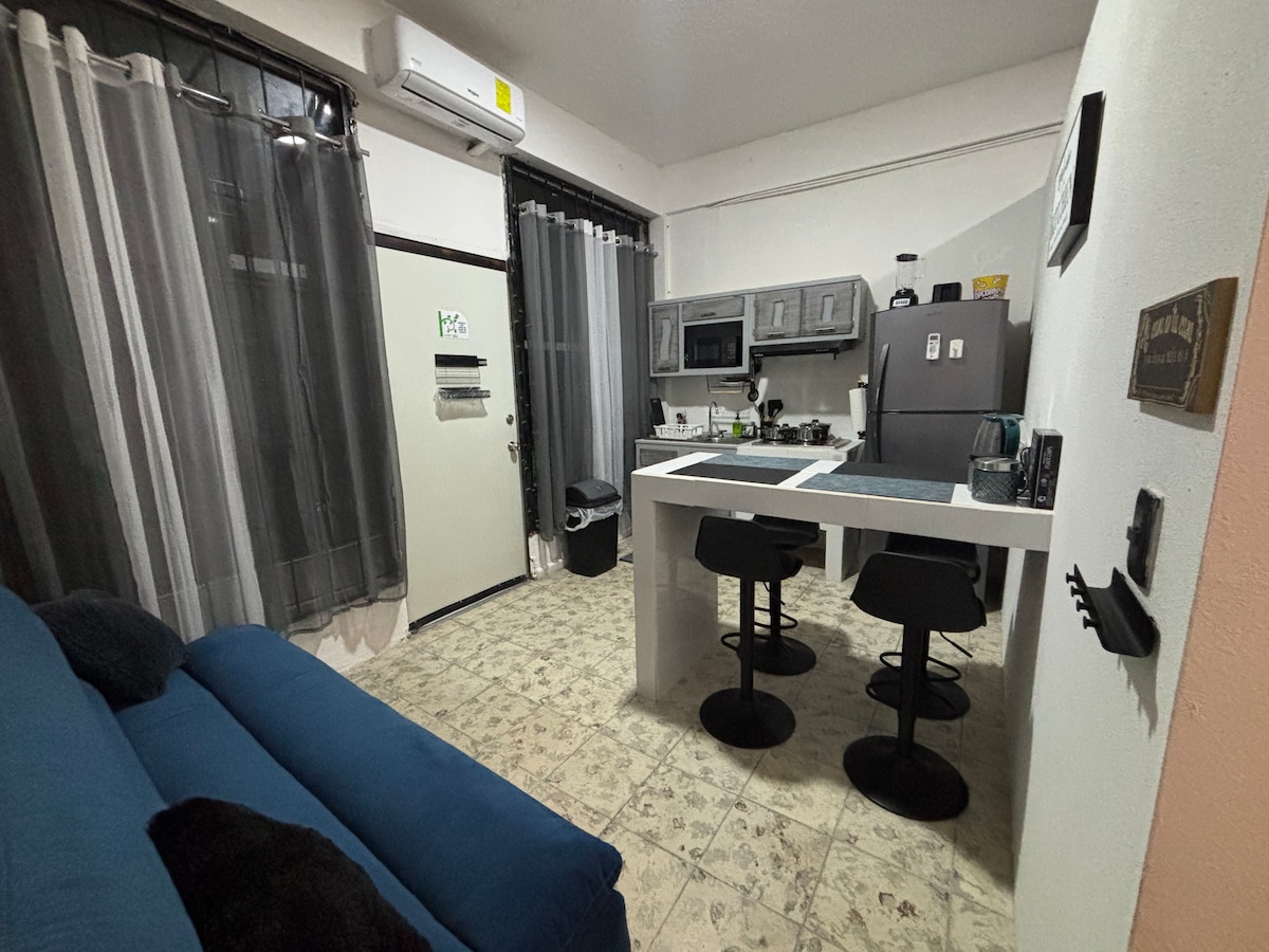 Finally we Re Open after covid.! My apartment has a fantastic location. We are in a residential area, 3 blocks from the "Galerias Tec Mall" and 10 minutes from the American Consulate, 15 minutes from the International Bridge and surrounded by restaurants where you can walk to. It is located on the second floor and fully furnished. The living room has sofa . Equipped kitchenette, washing machine, dryer, desk with maps of the city, TV and Wi-Fi.