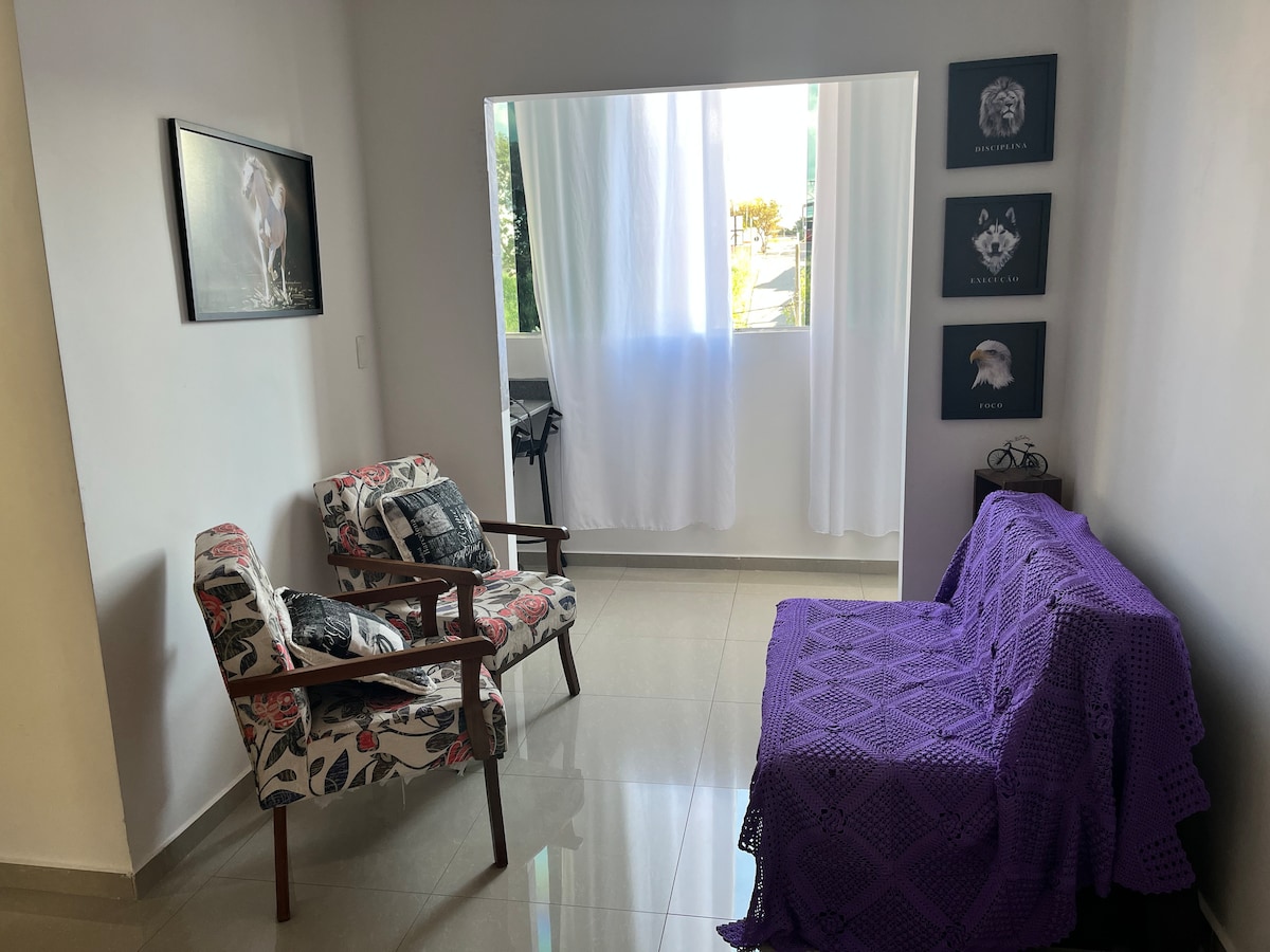 Aproveite sua estadia em um apartamento arejado, com varanda e vista da cidade. Localização central, próximo à UPA e a comércios, ideal para quem busca praticidade e conforto. Perfeito para temporadas curtas ou longas, com ambientes bem iluminados e acolhedores para você relaxar após um dia de passeio ou trabalho.