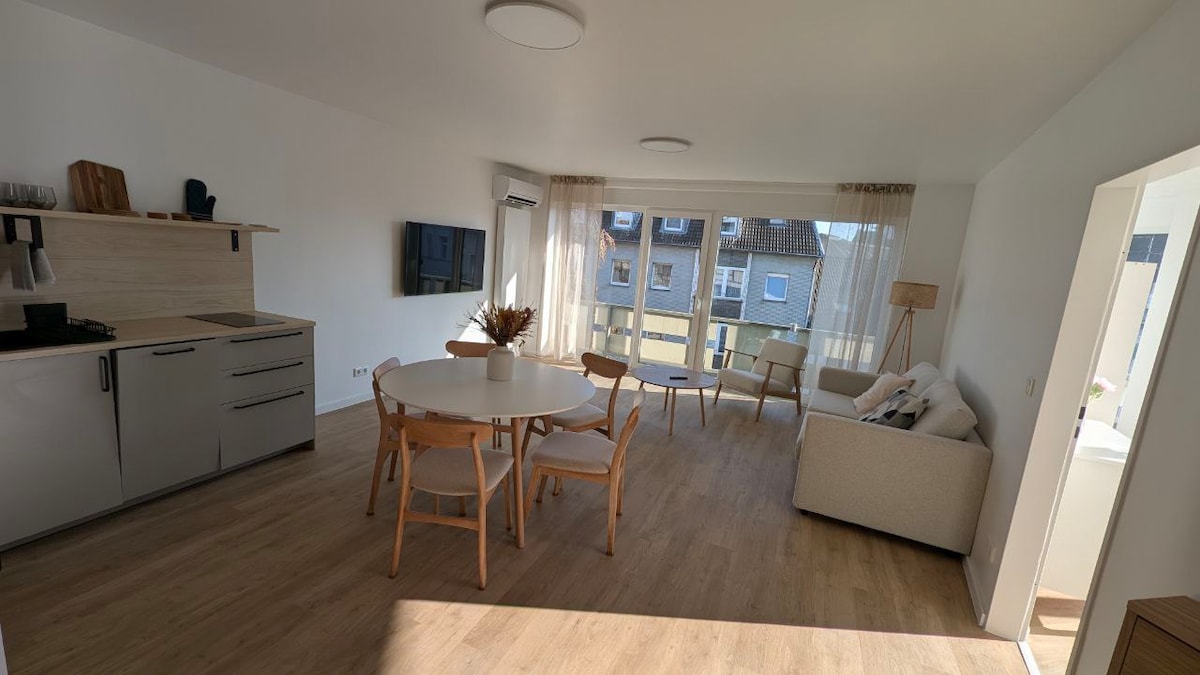 Modernes und geräumiges Apartment in Mönchengladbach – zentral, gemütlich & top ausgestattet! Im Erdgeschoss gelegen, mit heller Wohnküche, Induktionskochfeld, Smart-TV & Bose Surround-System. Schlafzimmer mit Lüftungsanlage für erholsamen Schlaf, Bad mit bodengleicher Dusche & Waschmaschine. Nur 20 m zur Bushaltestelle (Linien 017/007) – Zentrum schnell erreichbar. Lidl, Kaufland & ein leckerer Italiener gleich um die Ecke. Perfekt für Business & Citytrip!