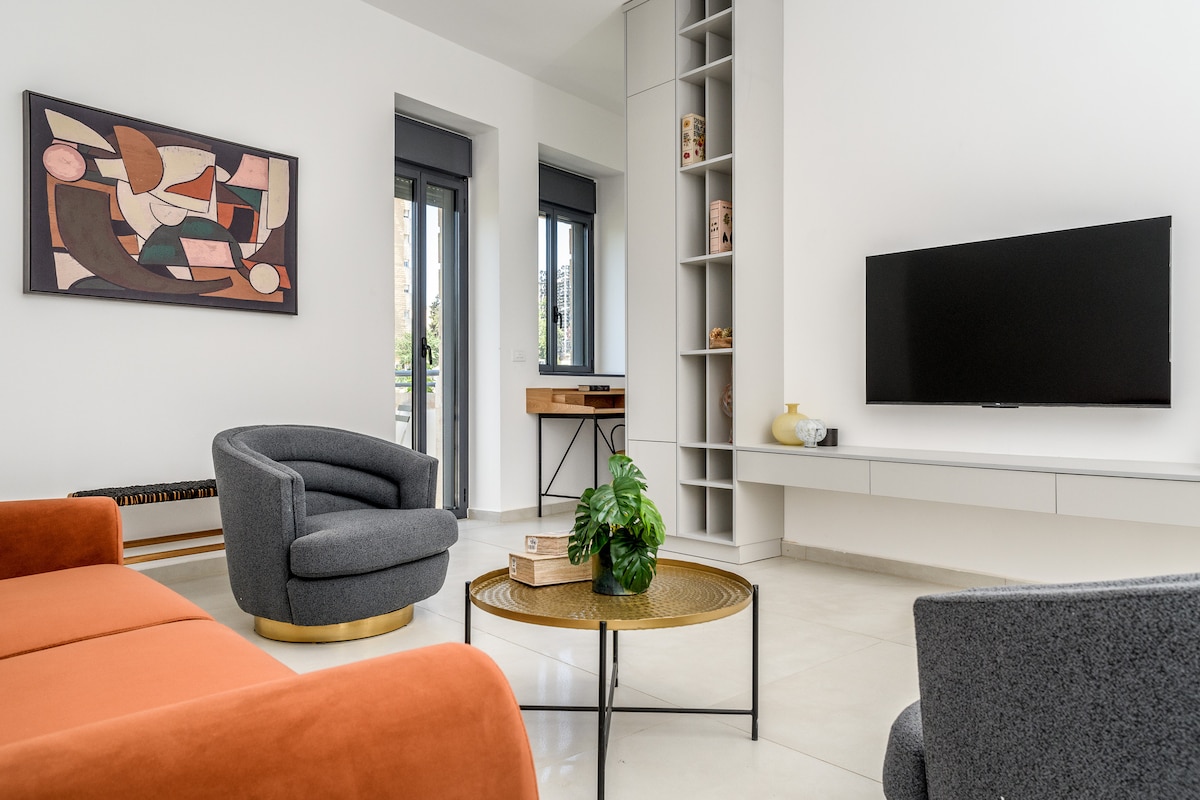This sunny apartment overlooks magical Ha-Nevi'im Street, home to the famous Jerusalem landmarks of Davidka Square, the Italian Hospital and Tabor House. Be enchanted by the ancient stone homes surrounded by gardens and walls, walk over to the nearby Old City and Russian Compound, or stroll the lively pedestrian-only Ben Yehuda Street. You can catch the Jerusalem Light Rail to the Central Bus Station, where you can ride the Tel Aviv-Jerusalem railway to Ben Gurion airport in under half an hour.
