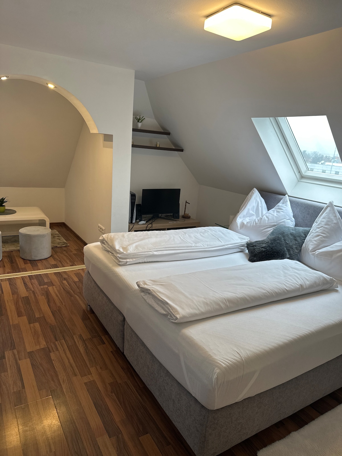 Enjoy your stay in the middle of the beautiful 13th district of Graz in a quiet and centrally located accommodation near the sights of Eggenberg Castle. Direct connection to public transport in just a few meters for a perfect sightseeing tour of the beautiful city center of Graz. The apartment is technically up to date (air conditioning, smart home, electric blinds) We are very happy to respond to the wishes of our guests in order to ensure that you have a wonderful stay.