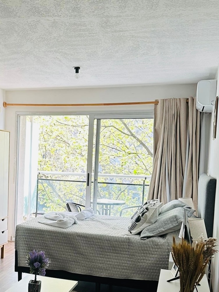 Modern 1-bedroom apartment in Parque Rodó. Bright and quiet, with large double-glass windows. Fully equipped kitchen with fridge, oven, microwave, utensils and tableware. Open living-dining area with 43" Smart TV and a home office space with Wi-Fi. Bedroom with queen bed and balcony access, plus a full bathroom. Excellent location: steps from Parque Rodó and the Rambla, surrounded by cafés, shops, and public transport at the door.