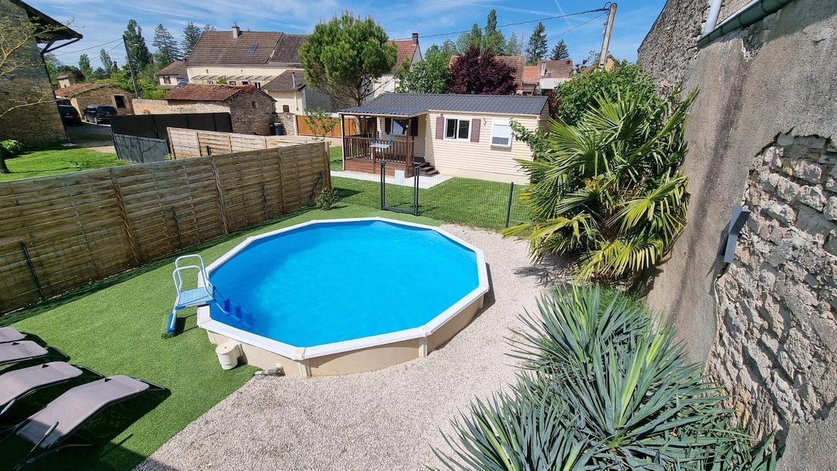 距离图尔努斯5分钟的空调小屋“A mi-chemin”。