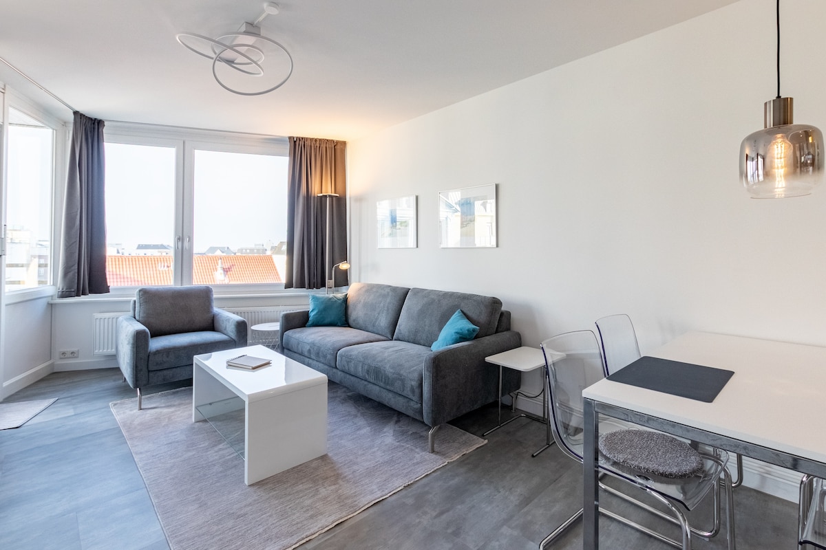 Mit viel Liebe zum Detail 04/25 renovierte und gemütlich eingerichtetes Apartment, befindet sich direkt am Hauptbadestrand und ist bequem über den Aufzug zu erreichen. Es besticht durch die zentrale und trotzdem ruhige Lage. Vom Esstisch und Couchgarnitur hat man einen wunderschönen Blick auf das offene Meer. Der überdachte und sonnige Balkon (Sonnenschirm vorhanden) lädt an warmen Tagen zum Frühstücken, sonnen etc. ein. Sonnenuntergang inclusive!