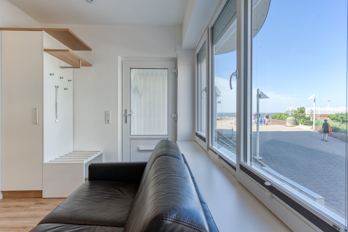 Die im Erdgeschoss liegende Ferienwohnung wurde 2020 vollständig renoviert und mit neuen Möbeln -inklusive einer hochwertigen Küche- ausgestattet. Das Raumkonzept ist extrem flexibel. Erholen und/ oder mobil arbeiten (Bürostuhl, 24 Zoll Monitor, etc.). Das Objekt befindet sich in erster Meereslinie und liegt in einer der besten Lagen auf Norderney. Auf ca. 32m² verteilen sich ein Flur, eine Küche, ein Badezimmer, ein Wohnraum mit einem Schrankbett und einem -ausziehbaren- 3-Sitzer-Sofa.