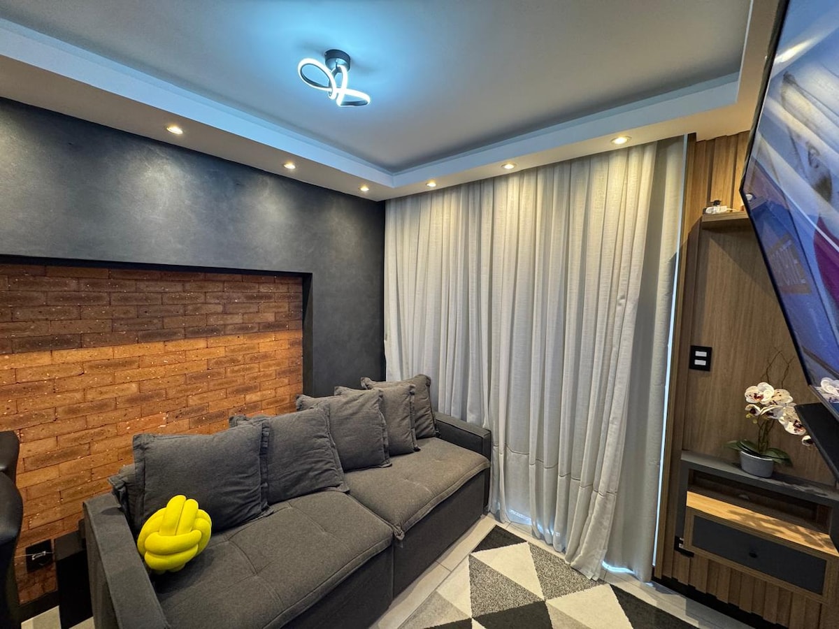 Feel the comfort and warmth of your home in the center of Juiz de Fora, with free parking included, whether for rest or work, with high speed internet (500mb). Your space here has a comfortable bed and a 400-thread-count duvet for cold nights watching your series on the 50-inch TV. If it's hot, we have air conditioning. The kitchen is equipped with pots and pans and ceramic dinnerware, in addition to all utensils. In the bathroom, enjoy the powerful shower with a double jet of water.