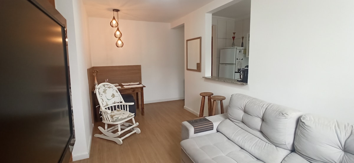 Um apartamento aconchegante, novo, moderno, funcional e seguro, possuímos portaria 24hs, câmeras de segurança. Para seu conforto, temos streamings disponíveis sem custo adicional. A Alexa te ajuda a ouvir uma música e além de passar informações sobre o AP. Temos: toalhas, lençóis, travesseiros e cobertores, além de sabonete, shampoo e condicionador. Talheres, copos, taças, pratos, panelas, eletrodomésticos em geral. Queremos proporcionar uma estadia bem agradável. #tudobomquerido