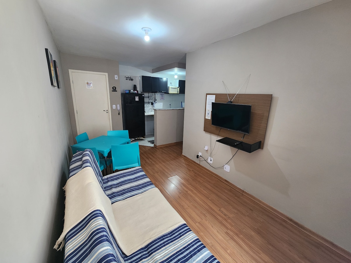 Feel the comfort and warmth of your home in the center of Juiz de Fora, with free parking included, whether for rest or work, with high speed internet (500mb). Your space here has a comfortable bed and a 400-thread-count duvet for cold nights watching your series on the 50-inch TV. If it's hot, we have air conditioning. The kitchen is equipped with pots and pans and ceramic dinnerware, in addition to all utensils. In the bathroom, enjoy the powerful shower with a double jet of water.