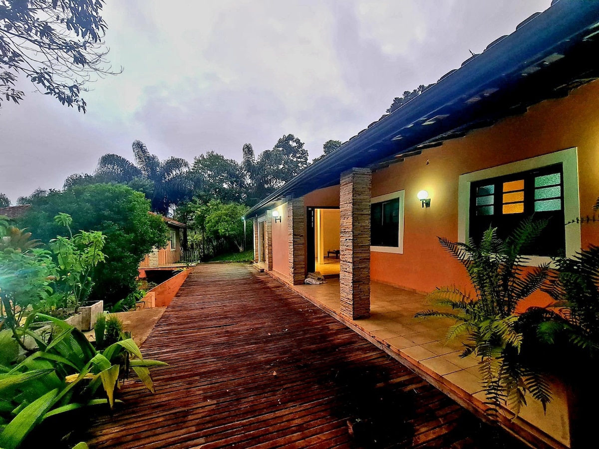 Desfrute do conforto e tranquilidade nessa charmosa casinha amarela na zona rural de JF, a apenas 18 km da cidade (20/25 minutos de carro). 2 suítes e 1 quarto com acesso ao banheiro social, equipada com fogão, frigobar e microondas. Enquanto relaxa na rede da varanda, que também conta com uma lareira para os dias mais frios, o hóspede pode desfrutar de vista privilegiada dos jardins. Durante a estadia, aproveite também outras comodidades como campo de futebol, piscina, cascata e lindos jardins.