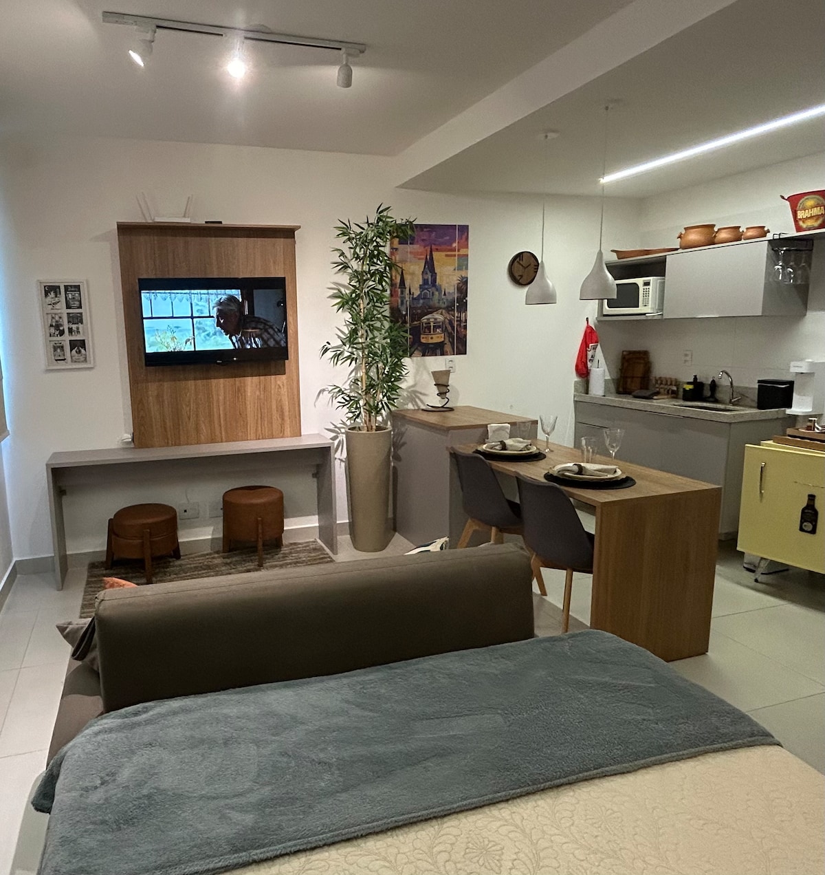 Venha conhecer e viver uma experiência aconchegante neste lindo loft com decoração moderna, excelente localização e equipado com tudo necessário para você ter uma estadia encantadora. Além de todo o prazer e satisfação em recebê-lo, destacamos em nosso espaço uma internet Wi-fi de altíssima velocidade, TV com acesso aos principais app de streaming, cozinha equipada, sofacama ventilador, segurança de acesso ao prédio sem contar a facilidade com o serviço de lavanderia disponível para os hóspedes.