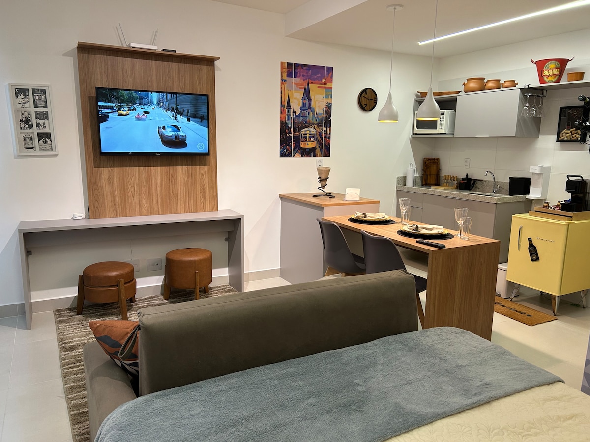 Loft in the São Pedro neighborhood, great location, 690 feet from the north gate of UFJF, with covered parking garage and electronic gate, 500 Mbps Wi-Fi, most popular video streamings and an Alexa with Spotify Premium available, as well as hair dryer, iron, Air Fryer, coffee maker, sandwich maker and everything else you need for a comfortable stay. Discounts available for 7+ nights stays and a special 35% discount for 28+ nights stays.