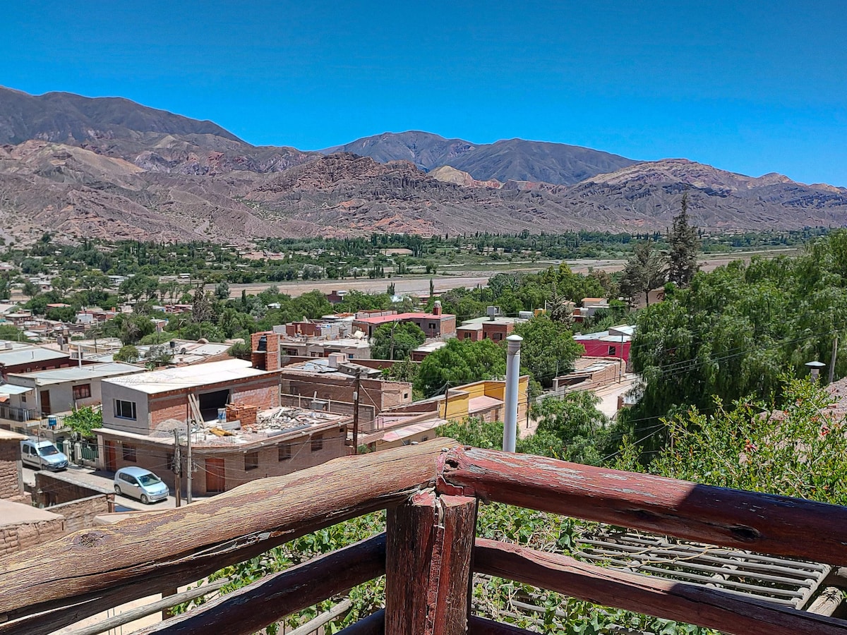 Te ofrecemos una cabaña con una super vista al cerro y al pueblo, a sólo 8 cuadras de la plaza de Tilcara. La cabaña tiene una habitación matrimonial y otra con una cama individual y una cucheta, con la comodidad de tener un baño en cada habitación. Cocina completa que incluye infusiones varias( café y tés) como para prepararse el desayuno y cocinar. Parrilla- Wifi- Calefacción - Estacionamiento propio. Mesa y sillones afuera, para disfrutar de la vista al cerro y la tranquilidad.
