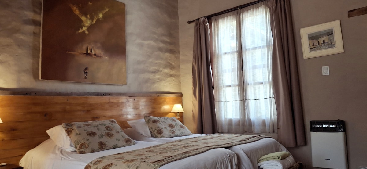 Habitación totalmente independiente, externa, para dos o tres personas con baño privado. El predio cerrado en el cual se emplaza cuenta con patio, quincho y asador, que son espacios comunes para disfrutar al aire libre. Se encuentra ubicada a cuatro cuadras de la plaza principal y de camino al Pucará, la zona arqueológica más importante de la región.