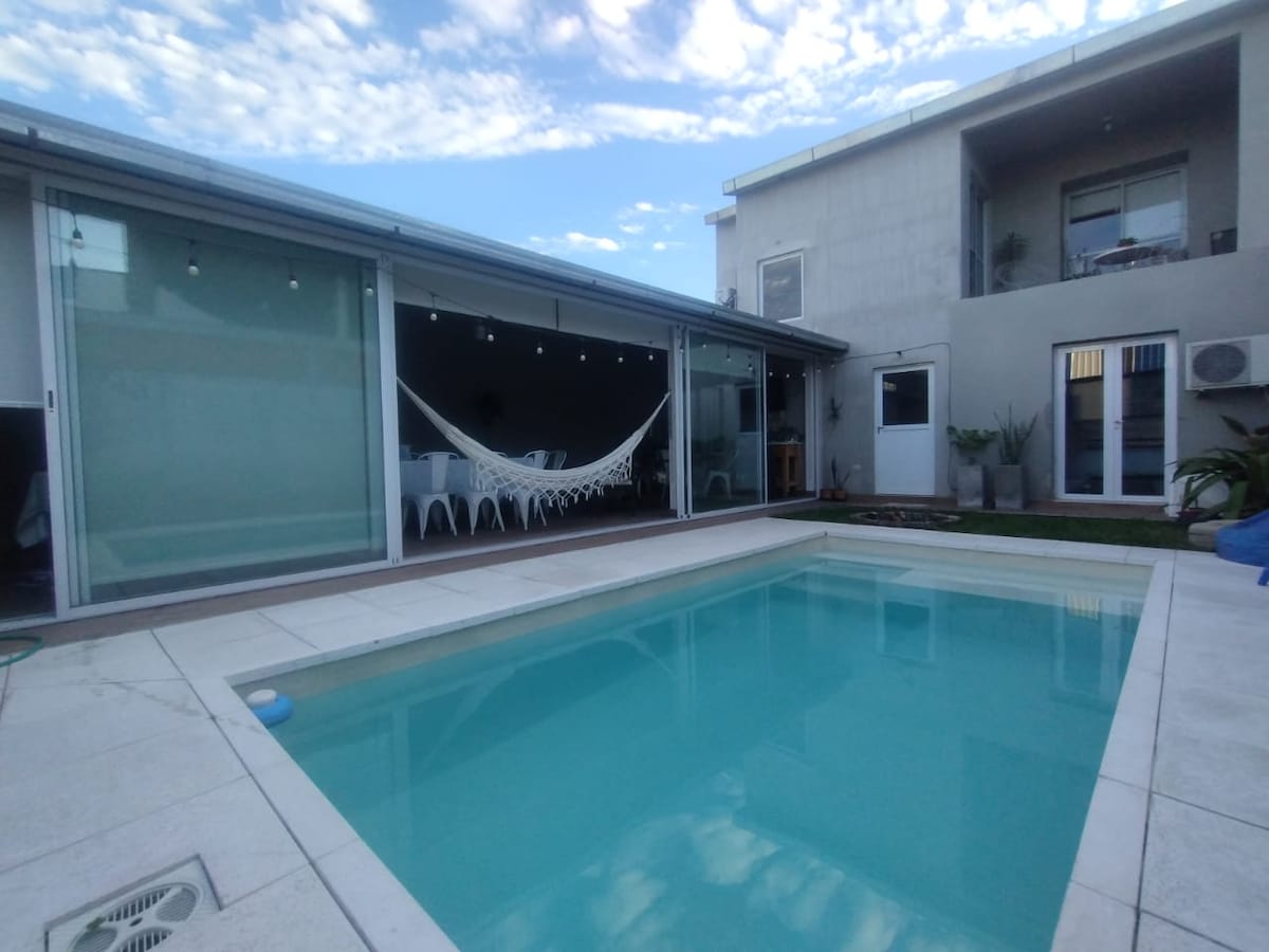 Ex Casa de dos plantas, cuya parte inferior está ofrecida en este anuncio como "bungalow" o monoambiente extra-grande, con capacidad para 5 o incluso 7 personas. En primera planta vive quien les habla y administra el lugar. El espacio posee dos jardines (uno delantero y otro trasero) el delantero, permite ingresar el vehículo a modo estacionamiento y puede usarse con tranquilidad. El jardín trasero es de uso del dueño y hay perros. Los precios en Airbnb, nunca están exactos. Hablar por F B o IG